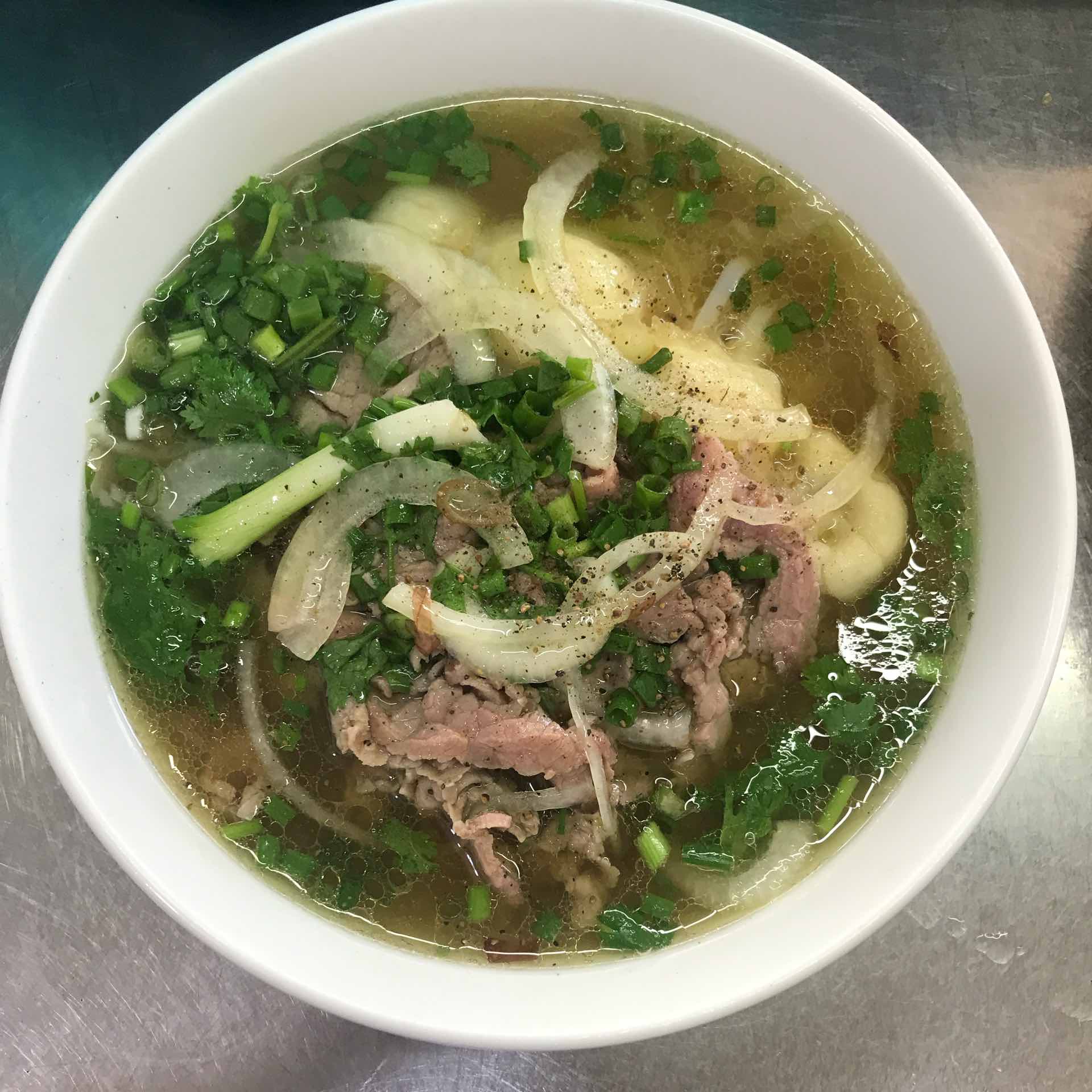 Thịt bò tái tươi kết hợp với gầu bò hầm gia vị cổ truyền ăn mềm ngọt giòn thơm ngậy vị bò, Bánh phở trắng mềm dai nước lèo hầm xương thịt tươi nóng thơm không bột ngọt gợi nhớ phở cổ xưa cùng nhiều loại gia vị phở nhà làm, hành lá hành tây, chanh, ớt …tạo nên đẳng cấp Phở Mong-Phở cổ truyền Hà Nội.